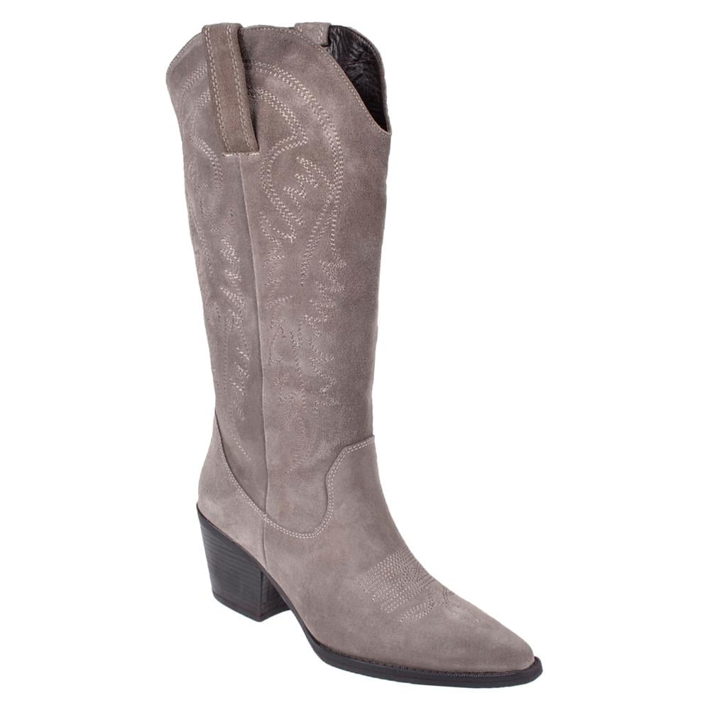 Pullman Hakiki Deri İşlemeli Western Kadın Çizme PLM-011 VİZON SÜET