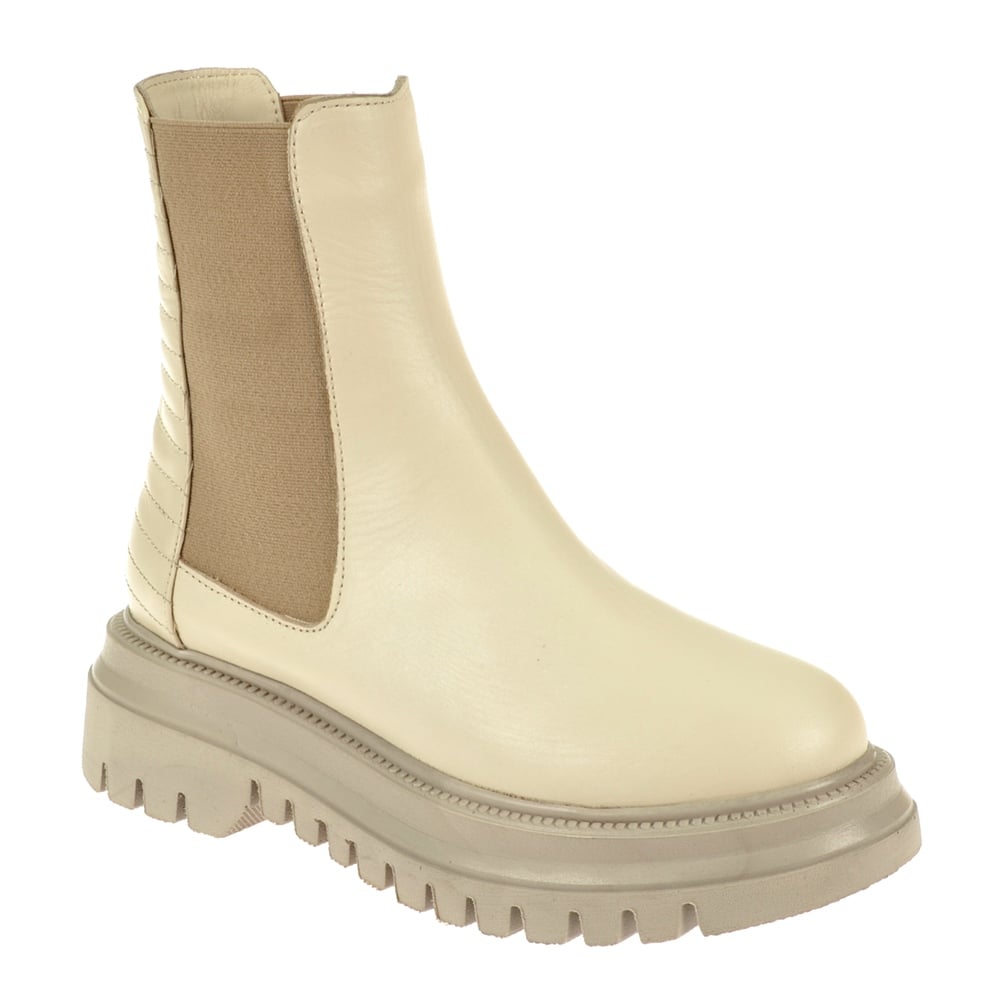 Pullman Hakiki Deri Yanları Lastikli Kadın Bot PLM-FELAL   BEJ
